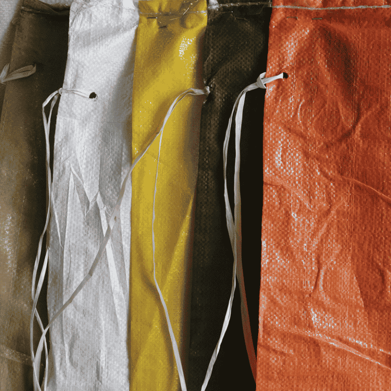 Our polypropylene Sand Bags are treated with 2000 hrs. UV resistance and made from 10×10 weave and 850 Denier. Bags are Hemmed Top mouth, single folded bottom double stitched. Bags come with a strong tie string and 1000 Bags in a Bale. These Sand Bags are available in different colors like White, Beige. Tan, Orange, Yellow and Green. Standard bags are 14” ×26” available in 5 colors. Larger 18” ×30” PP WOVEN bags come in white color.